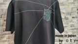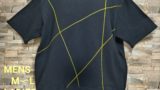 メンズLサイズの黒ベースの日本国内製造の1点物Wide幅Tシャツです。身幅、肩幅がゆったり目のスタイルです。黒の綿100%の少し厚みのある天竺生地です。胸元には白&黒&ブラウンの生地で独特なチェッカーフラッグ柄に作って配置したあるインパクトのある遊び心のある1点物Tシャツです。衿ぐりは共地のバインダー仕様。袖口、裾は二本針仕様。