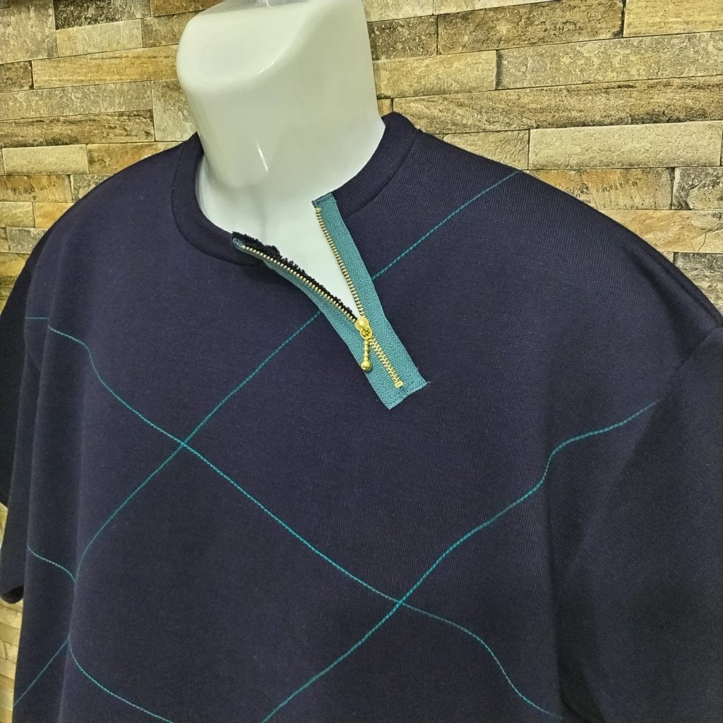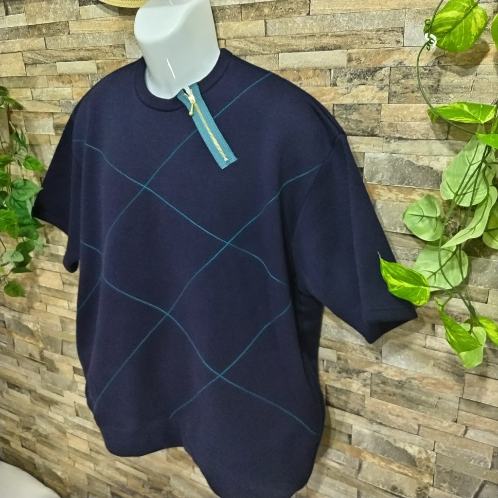 メンズM~Lサイズのダークパープルの鬼裏毛の日本国製造の1点物の裏毛Tシャツです。光の当たり具合でパープルがはっきりしたり、ネイビー系に見えたりする色合いのダークパープルです。形はバルーンタイプで両脇にはポケット付き。バルーンタイプなので女性が着てもゆったりかわいく着られます。ヘビーゲージの目の詰まったしっかりした裏毛です。袖口は二本針仕様。衿、裾は共地仕様。衿元にはブルーグレーのファスナー付き。前身にはターコイズのチェーンステッチを施し1点物ならではの遊び心満載の1着です。脱着時はファスナーを開けるとスムーズに脱着できます。